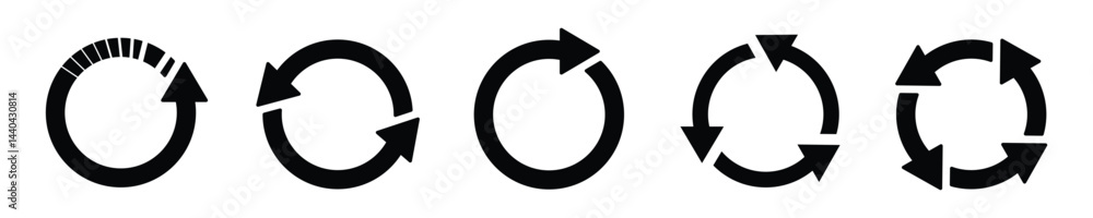 circle arrow icon set, containing refresh, rotation, reload, Repeat and more, recycle symbol Vector illustration. #1440430814
