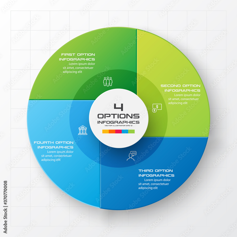 Circle chart infographic template with 4 options,Vector illustration. #370770008