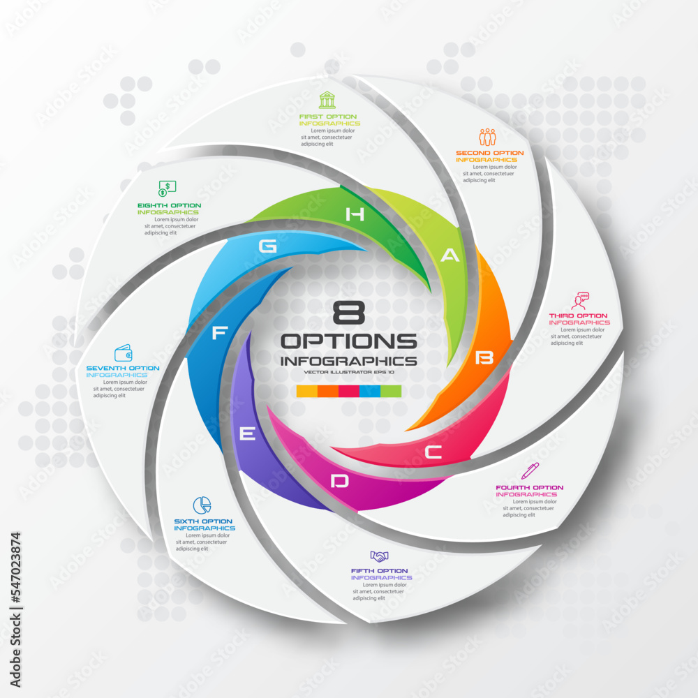 Circle chart infographic template with 8 options,Vector illustration. #547023874