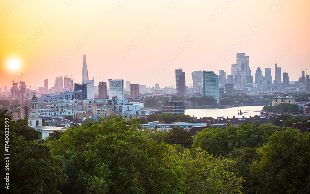 City of London at sunset, view from the Greenwich hill. #1740023899