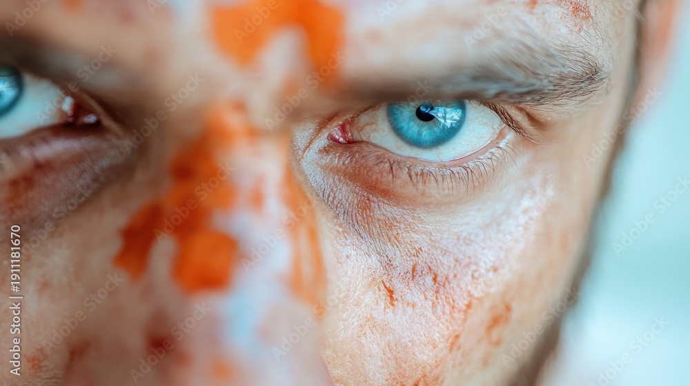 Close-up of a terrifying zombie man with eerie, striking features #1911181670