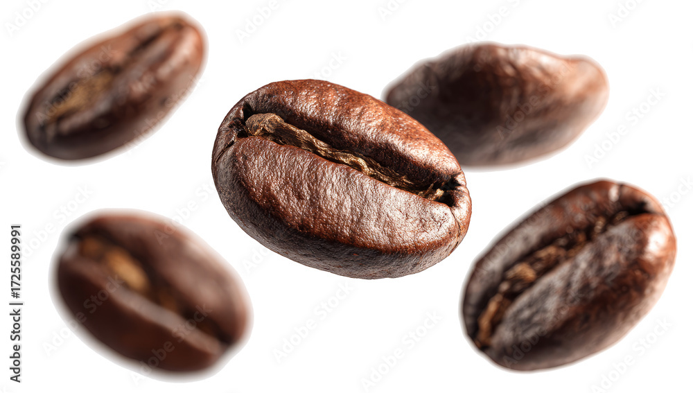 Close-up of Dark Brown Coffee Beans on White Background #1725589991