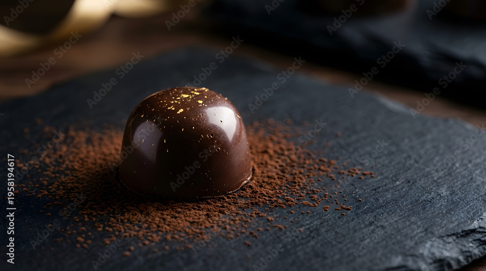 Close-up of Delicious Chocolate Truffle with Cocoa Powder. #1958194617