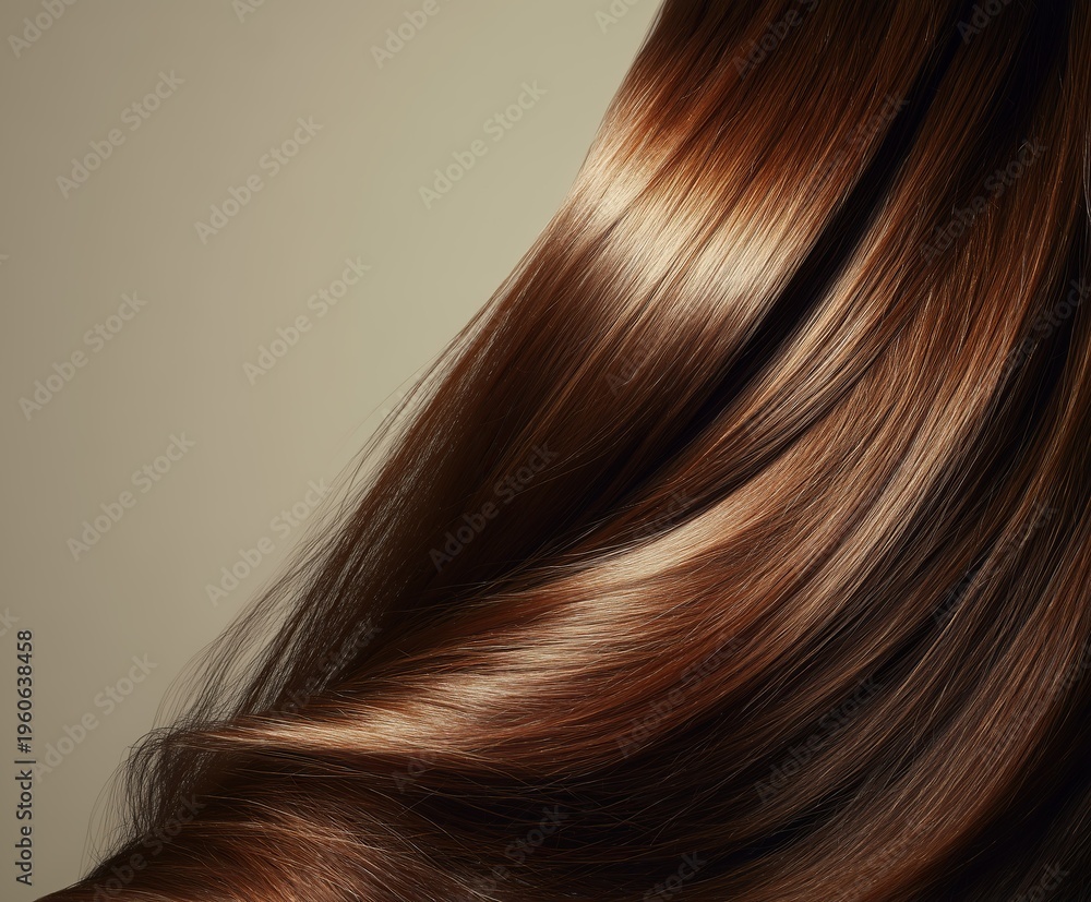 Close up of shiny healthy hair with smooth texture and natural glow. #1960638458