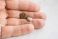 Closeup photo of male hand holding two small used button batteries. Corroded and clean button batteries in hand, close-up on white background #1761786313