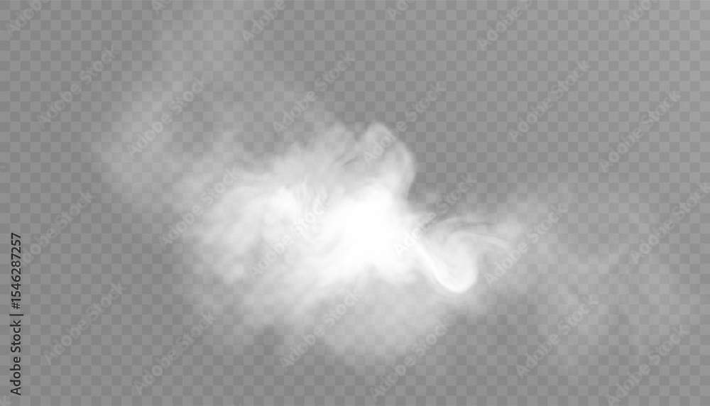 Clouds of white smoke or steam with realistic texture on transparent background. Vector smoke to simulate fog, cold breath, magic effect or explosion. #1546287257