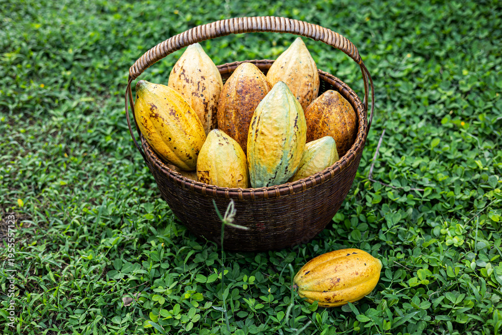Cocoa Pods Harvested In Basket Backyard Garden #1955557123