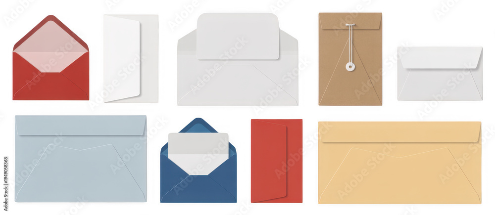 Colorful assorted envelopes white isolated on a transparent background #1949058368