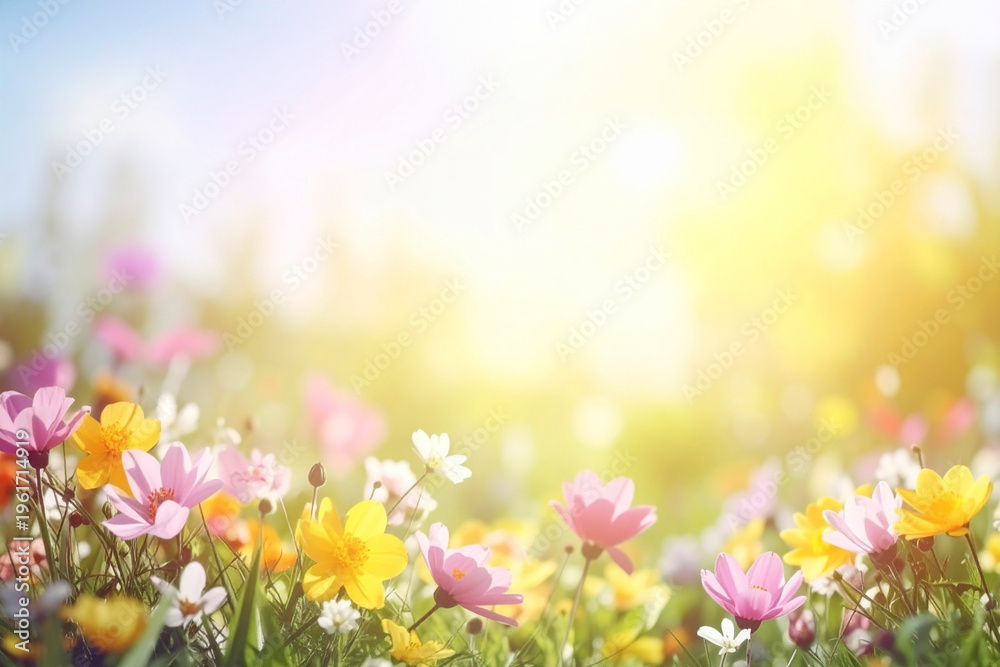 Colorful flowers in the garden with sunlight and bokeh background. Spring background with flowers #1961714919