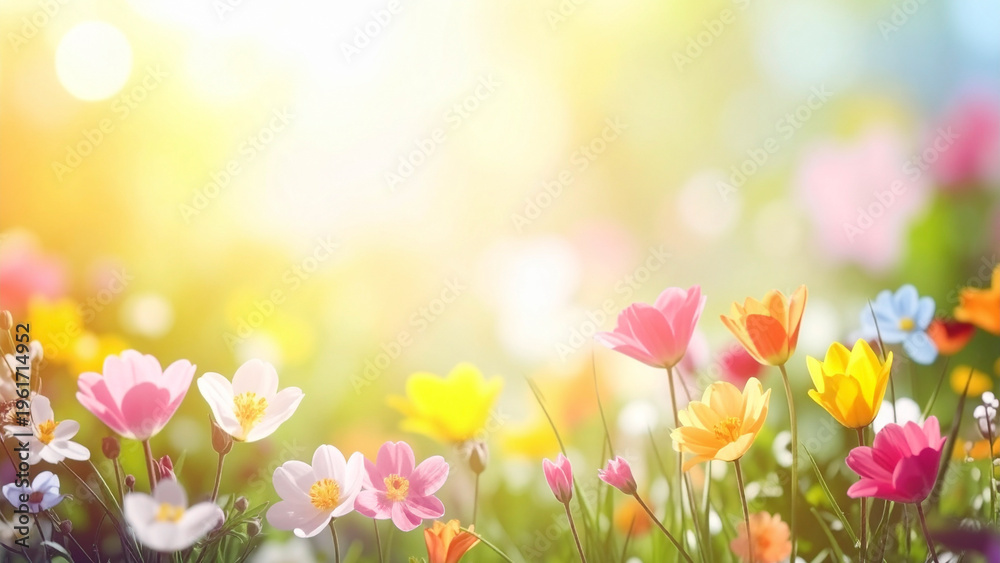 Colorful flowers in the garden with sunlight and bokeh background. Spring background with flowers #1961714952