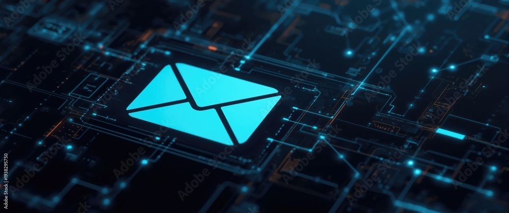 Conceptual email correspondence shown with email forwarding service icon on digital surface #1938295750