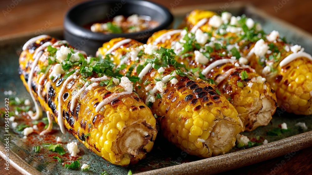 Corn, grilled, gets mayo in Mexican street style. #1954056422
