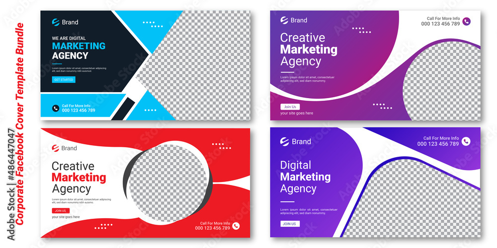 Corporate colorful digital marketing agency business social media cover template bundle , social media post template design or business marketing promotional banner template #486447047