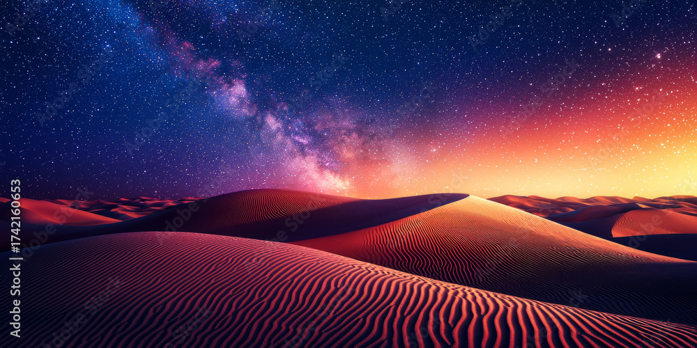 Cosmic sand dunes shimmering with subtle glitter and soft purple-orange gradients #1742160653