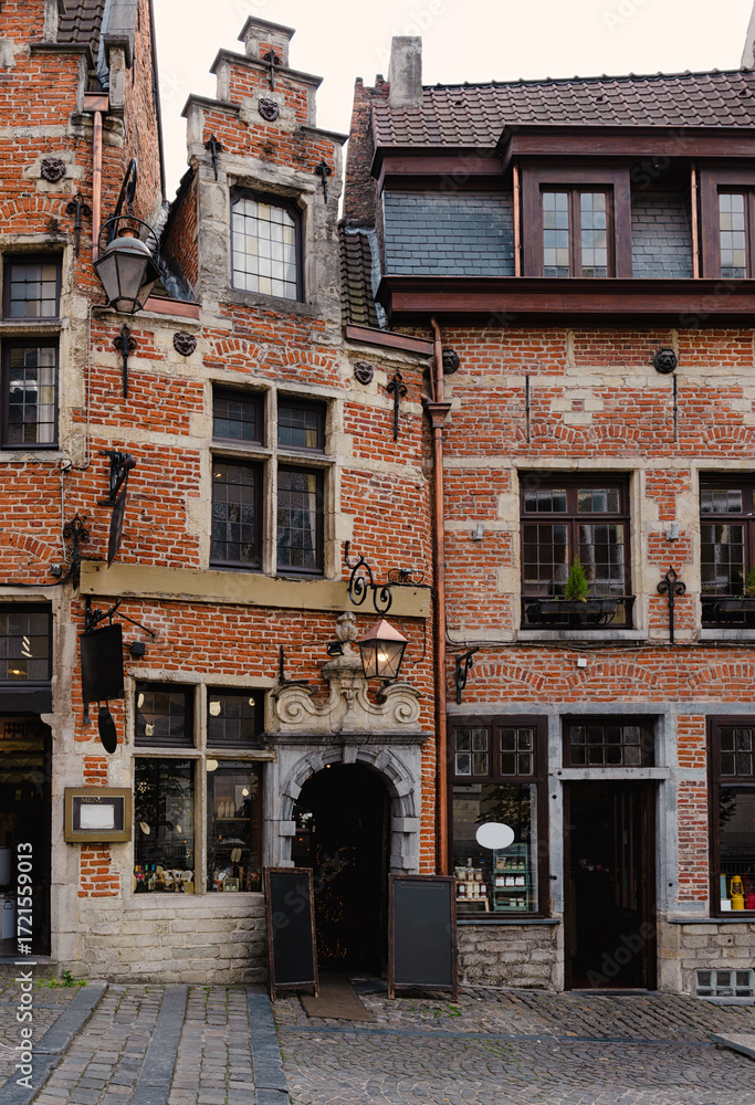 Cozy old street in center of Brussels, Belgium. Cityscape of Brussels (Bruxelles). Architecture and landmarks of Brussels. #1721559013