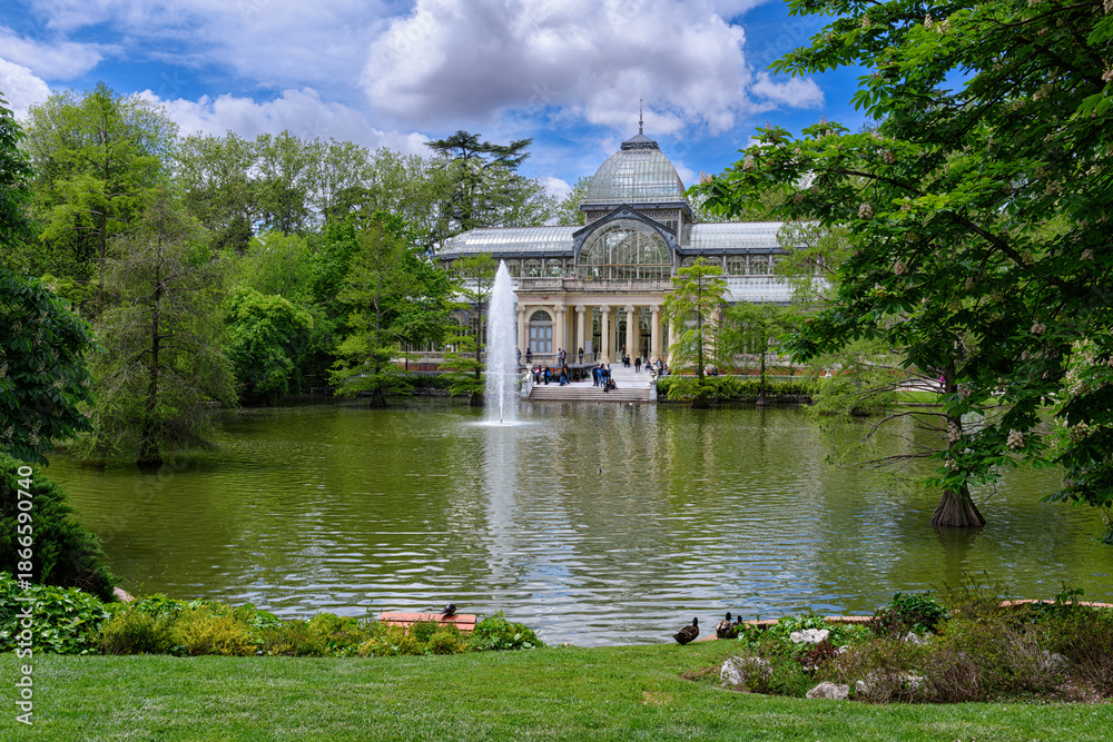 Crystal Palace (Palacio de cristal) in Buen Retiro Park in Madrid, Spain. Retiro Park is one of the largest parks of the city of Madrid. #1866590740