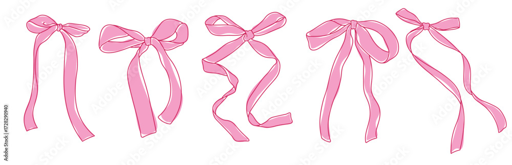 Cute pink ribbon bow vector collection. Coquette style with pink bow clip art #1728290940