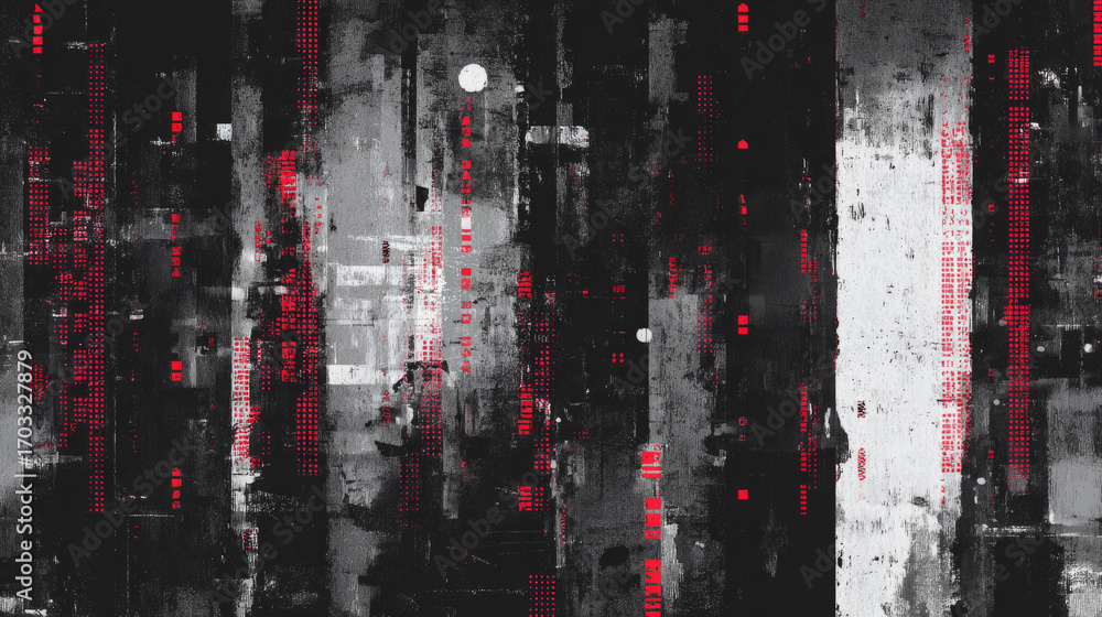 Dark cyber glitch wall, grayscale with crimson accents, vertical panels and scanlines #1703327879