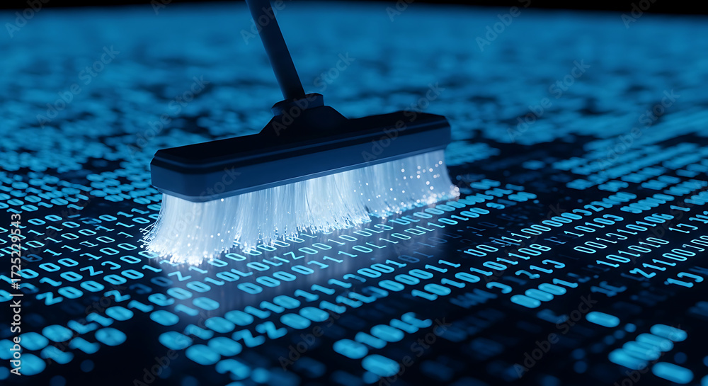 Data cleansing concept, a brush cleaning binary code background. #1725229543