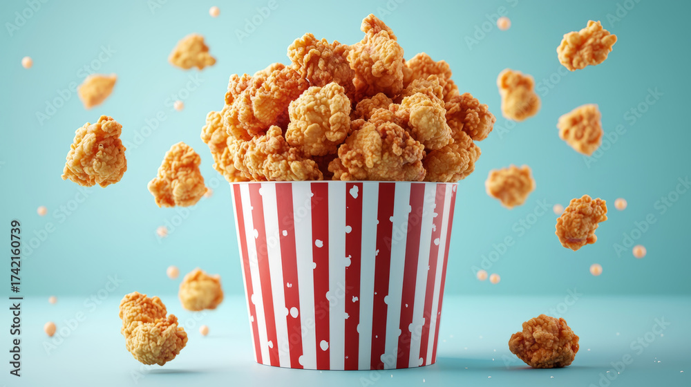 Delicious golden crispy fried chicken nuggets and wings in buckets #1742160739