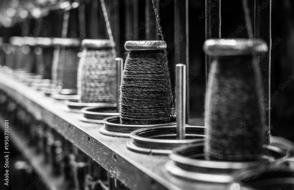 detail of a historic industrial loom machine #1958731081