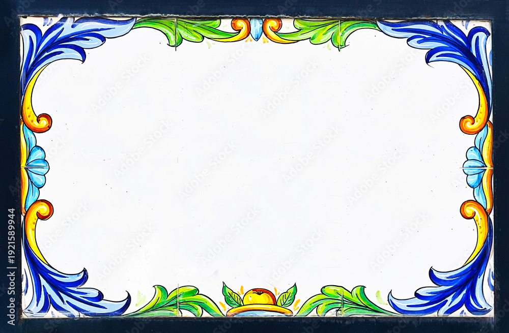 Detail of the traditional tiles from facade of old house. Decorative tiles.Valencian traditional tiles. Floral ornament. #1921589944