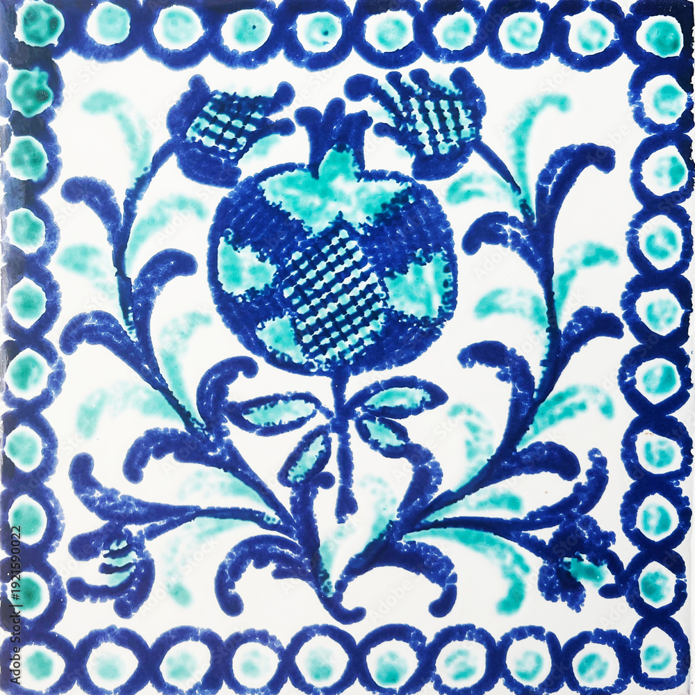 Detail of the traditional tiles from facade of old house. Decorative tiles.Valencian traditional tiles. Floral ornament. #1921590022