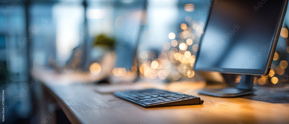 Detailaufnahme eines Desktops im Büro mit professioneller Ausstattung – modernes Design #1708603446