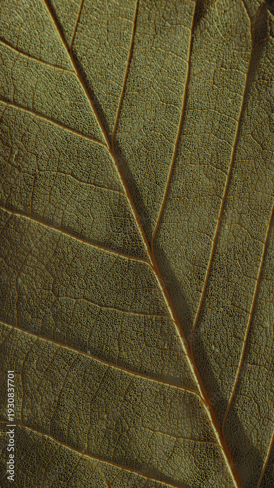 Detailed macro texture of a green leaf with intricate vein patterns, high resolution authentic botanical background #1930837701