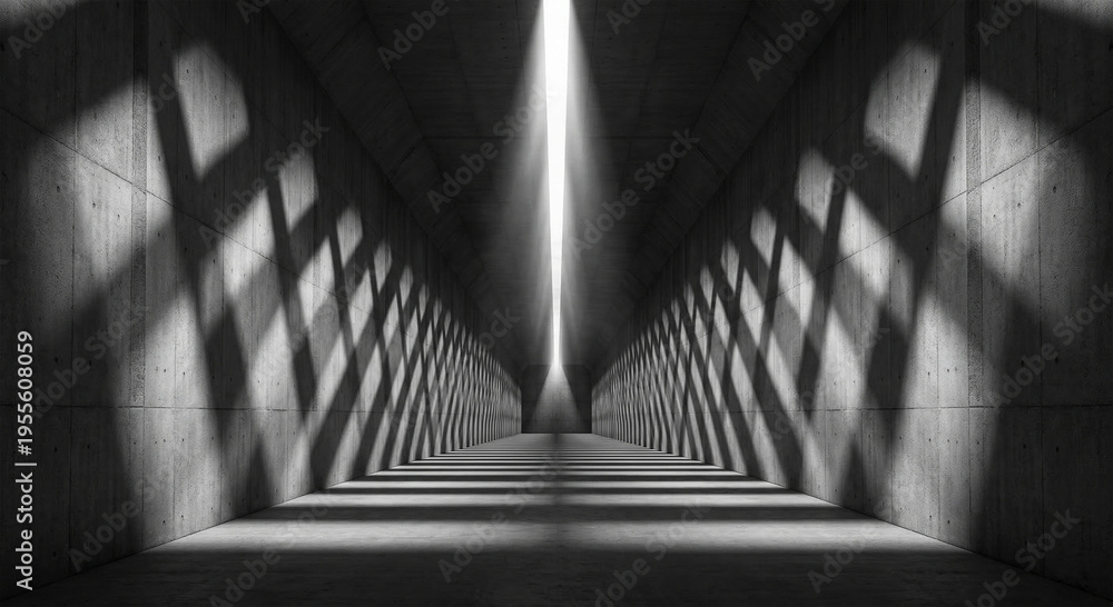 Dramatic Concrete Corridor with Light Beam and Geometric Shadows, Minimal Architecture Background #1955608059