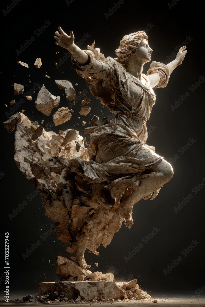 Dramatic marble statue exploding into fragments #1703327943