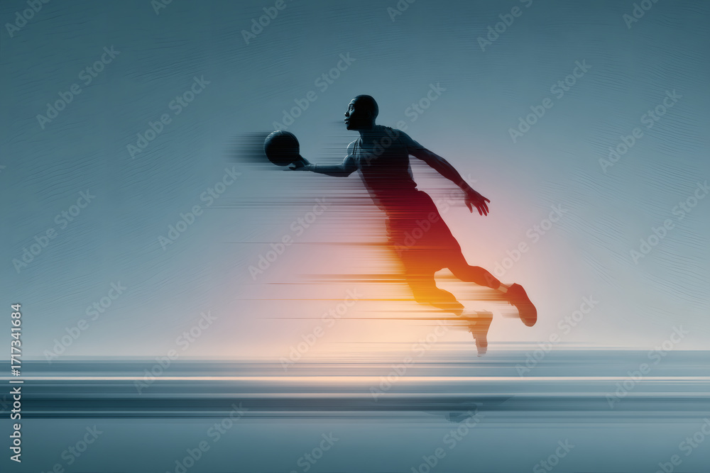 Dynamic Basketball Dunk Mid-Air with Abstract Motion Blur #1717341684