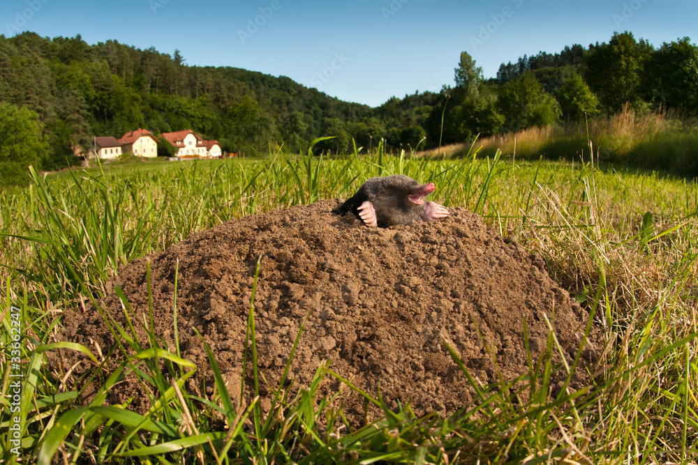 Ein Maulwurf ruht sich auf seinem Haufen aus. #33662247