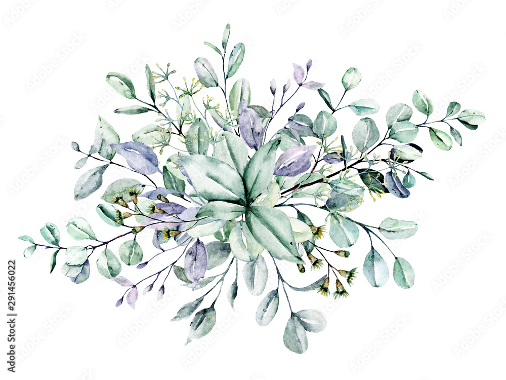 Eucalyptus watercolor leaves. Hand painting botanical illustration. Leaf isolated on white background. #291456022