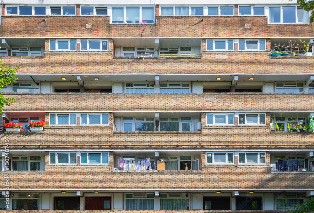 Facade of a block of flats on New Orleans Walk estate in Hornsey, London, UK #1307487407