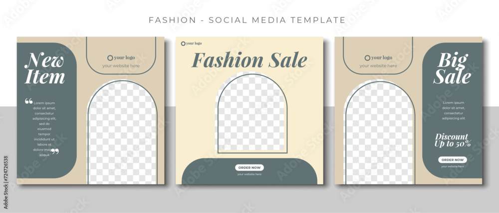 fashion woman beauty grey social media post template design, event promotion banner vector #724726538