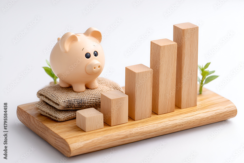 Financial growth concept with piggy bank and wooden bar graph on wooden base #1795584458
