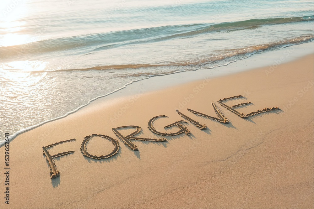 forgive word on beach sand in morning. #1539652641