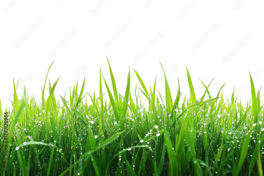 Fresh patch of grass with morning dew captured in sunlight highlighting each droplet and blade, showcasing vibrant green hues in the early light of dawn #1747120986
