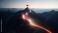 Glowing path leading to success concept with flag on peak of mountain #728739939