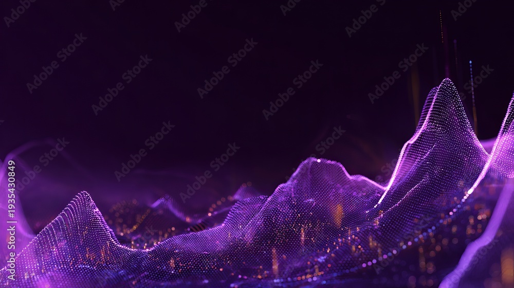 Glowing purple waves show complex money data. Analyzing it with modern graphics reveals business insights. #1935430849
