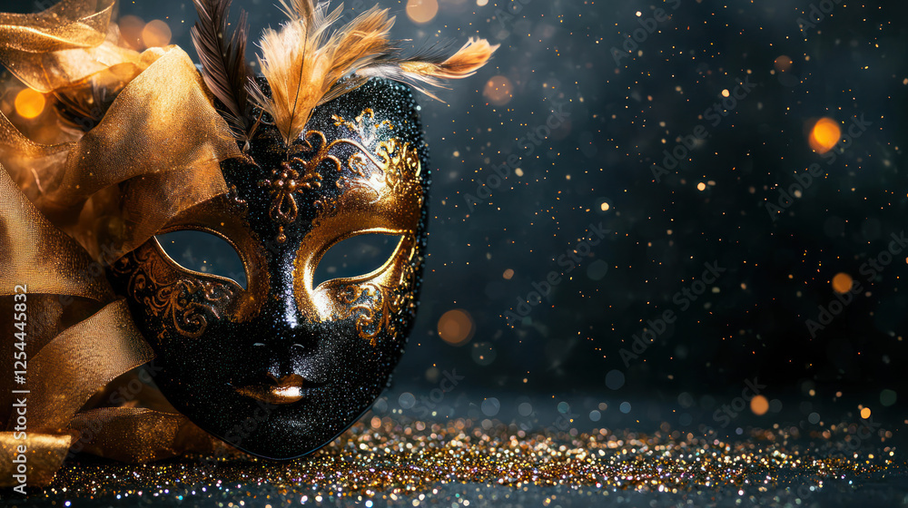 Golden Black Venetian Mask On Dark Background #1254445832