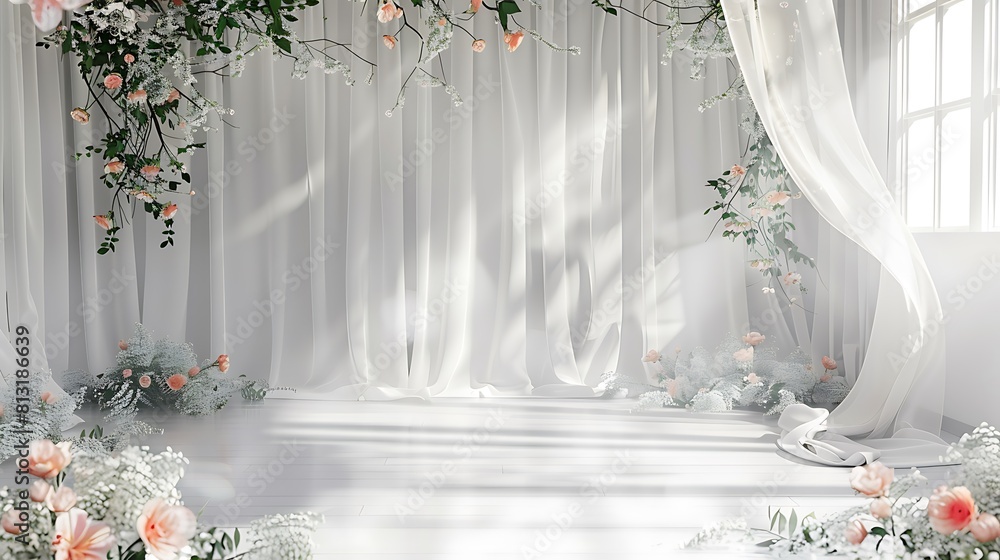 Gorgeous chapel for wedding celebration, many pretty flowers, beautiful decorations for wedding, copy space,space for text,Generous AI,結婚式のお祝いのための豪華なチャペル、多くの綺麗な花々、結婚式の美しい装飾、コピースペース,テキスト用スペース #813186639