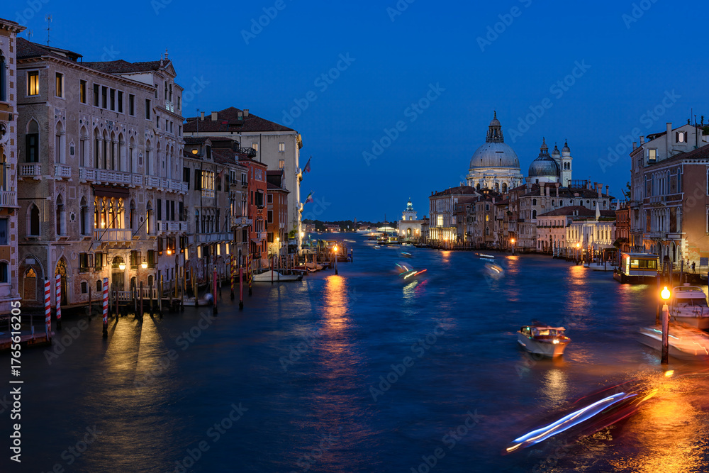 Grand Canal with Basilica di Santa Maria della Salute in Venice, Italy. Night view of Venice Grand Canal. Architecture and landmarks of Venice. Venice postcard #1765616205