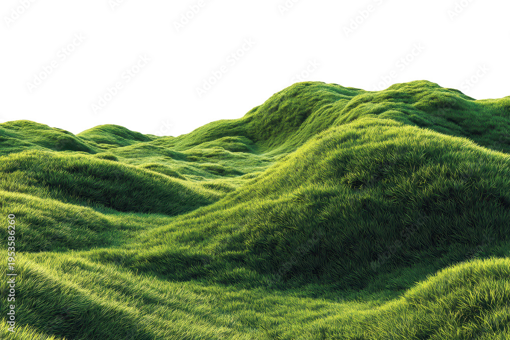Grass-covered hills stretch across the horizon under clear sky in a natural landscape setting #1953586260