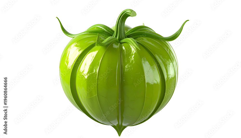 Green tomatillo plant close-up on black background fresh and vibrant produce ingredient #1960864666