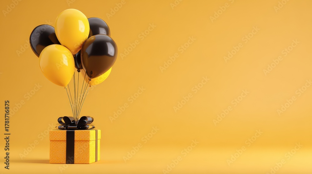 Halloween decorations featuring black and yellow balloons with a gift box on an isolated background #1781716875