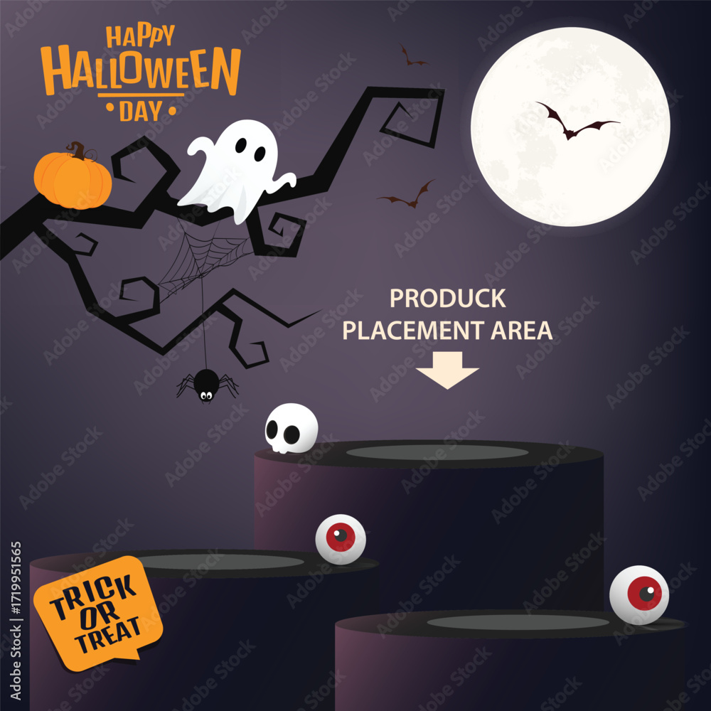 Halloween Night Scene with Pumpkins Ghost and Full Moon. vector design #1719951565
