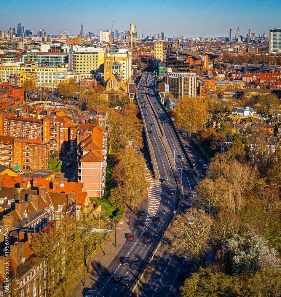 Hammersmith and A40 Corridor with West London Skyline in Warm Urban Light #1956761349