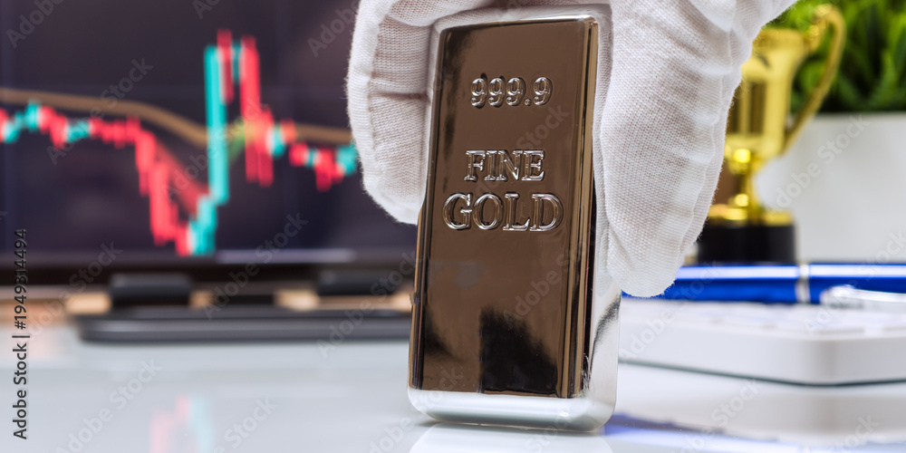 Hand Holding Gold Bar with Market Chart Investment Concept #1949314494